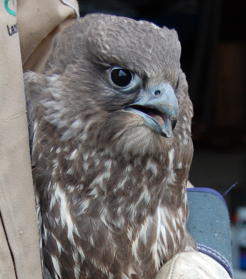Skadad jaktfalk hittad på järnvägsstationen. Foto Pontus Wennesjö