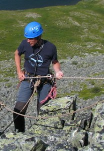 Tomas Bergström på väg ned till ett jaktfalkbo. Foto: Ulla Falkdalen