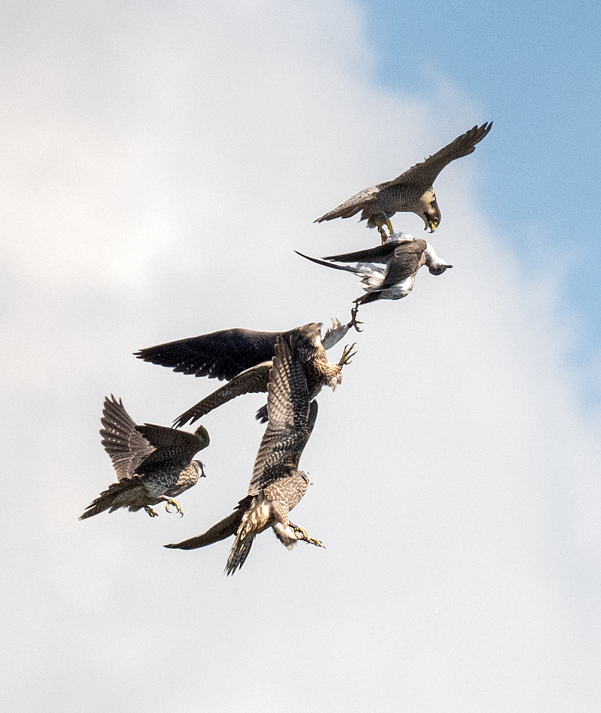 Vinnarbild i kategorin ”Fångat i flykten”. Dvärgmås fotograferad av Tim Beterams. Fotoklubbens bedömning: ” Dvärgmåsen fångad skarpt i en härlig pose och mot en bakgrund som framhäver fågeln. En utmärkt bild med bra fokus och bra skärpedjup”.Vinnarbild i kategorin ”Fåglar i skogen”. Ung pilgrimsfalk. Foto: Olle Rinstad. Fotoklubbens bedömning: ”Tilltalande porträttbild av en pilgrimsfalk. Bra pose och fokus är utmärkt i hela bilden. Trevlig bakgrund. En enastående bild!”Hedersomnämnande ”Fåglar i skogen”. Lappuggleunge. Foto: Andreas Eriksson. Bedömning: ”Foto på lappuggleunge där bilden uppfyller de flesta kriterier på en utmärkt bild, miljö, komposition och fokus.”Hedersomnämnande i ”Fåglar i skogen”. Större hackspett matar ungar. Foto: Marianne Tengberg. Bedömning: ”Trevlig bild på hackspett i familjebestyr. Bilden har en bra komposition”.Hedersomnämnande i kategorin ”Fångat i flykten”. Unga pilgrimsfalkar lär sig av sin förälder att fånga ett byte i luften. Foto: Olle Rinstad. Fotoklubbens bedömning: ”Dramatisk och svårfångad situation där fotografen lyckats med denna bild i serien som den bästa och där man kommer närmast i skeendet. Bra komposition och bra fokus. Således en utmärkt bild.”Hedersomnämnande i kategorin ”Fångat i flykten”. Gräsandhanne. Foto: Johannes Enebog. Fotoklubbens bedömning: ”Bilden på gräsanden framträder skarpt mot bakgrunden och således bra fokus på objektet. Inget i bilden som stör fokuset på fågeln.”
